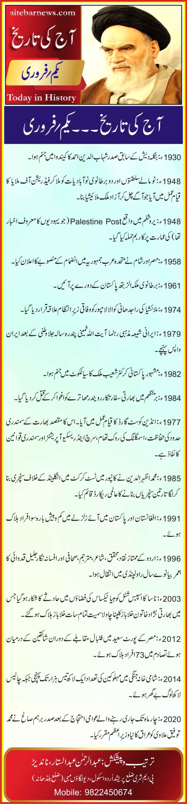آج کی تاریخ۔۔۔یکم؍فروری