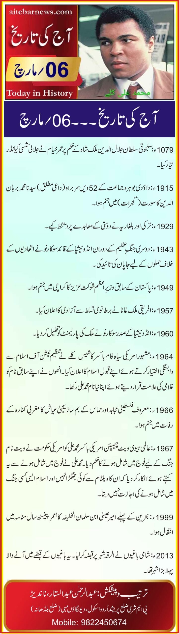 آج کی تاریخ۔۔۔06؍مارچ