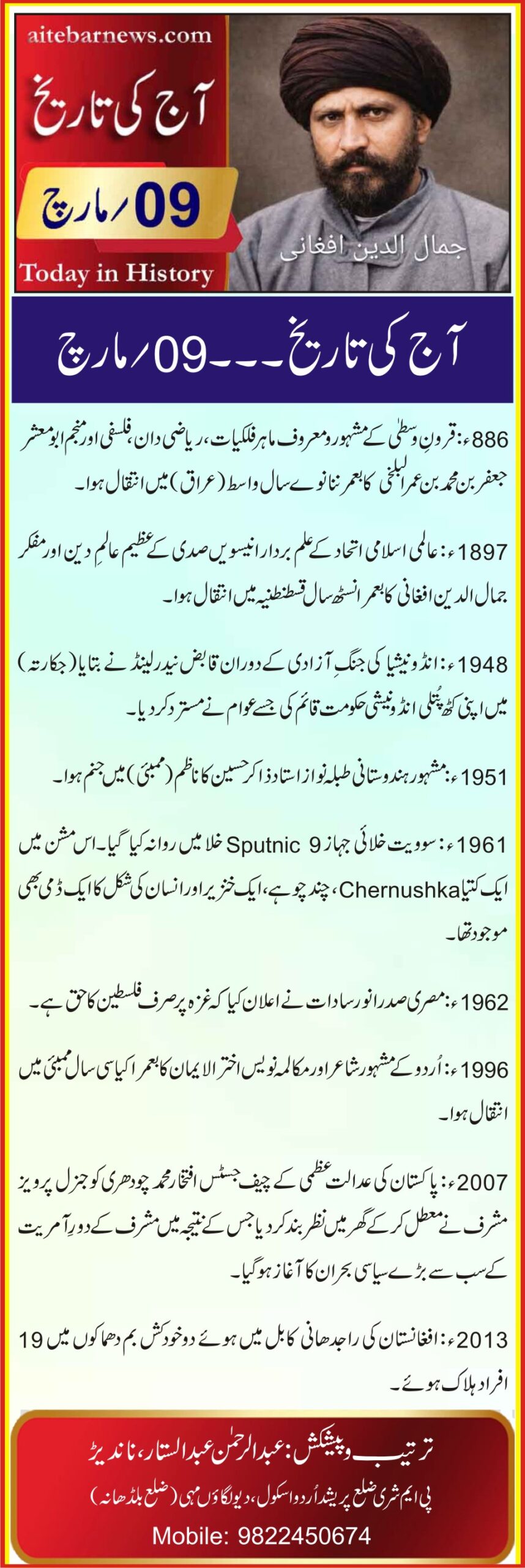 آج کی تاریخ۔۔۔09؍مارچ