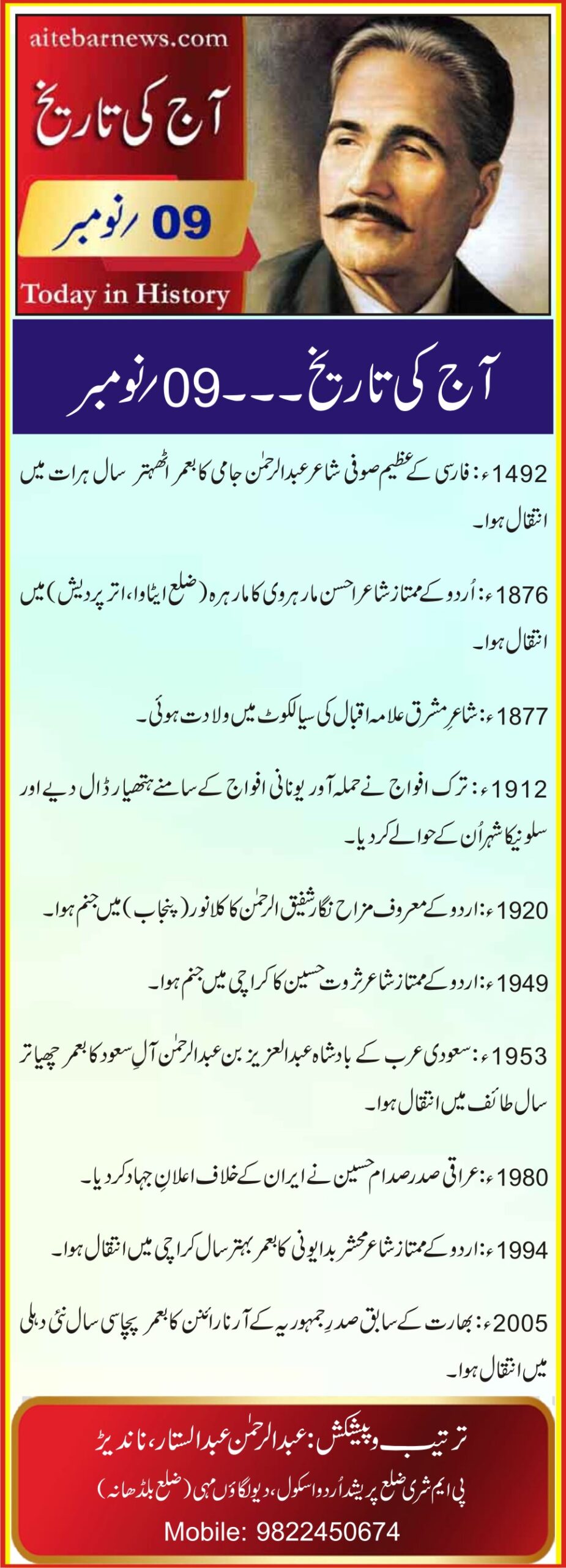 آج کی تاریخ۔۔۔09؍نومبر