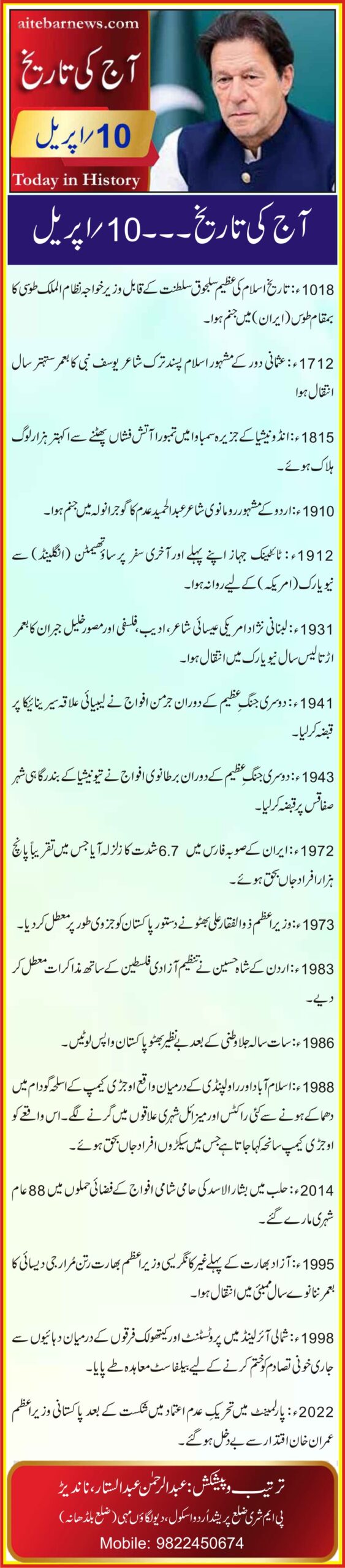 آج کی تاریخ۔۔۔10؍اپریل