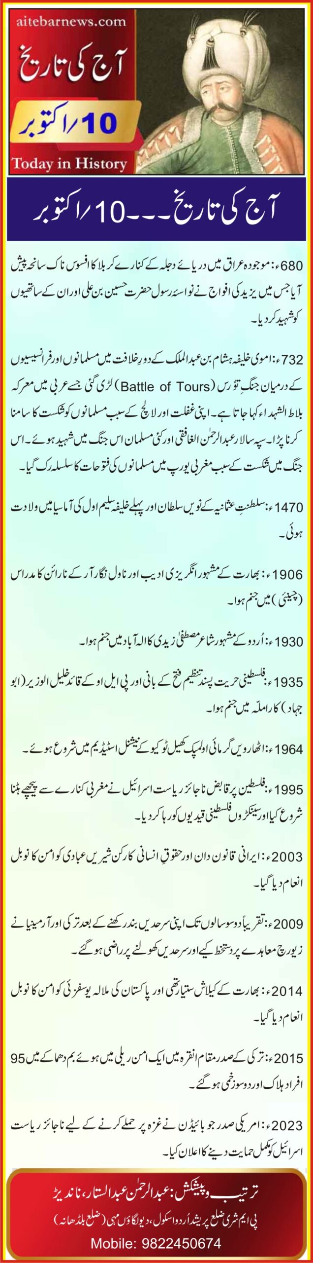 آج کی تاریخ۔۔۔10؍اکتوبر