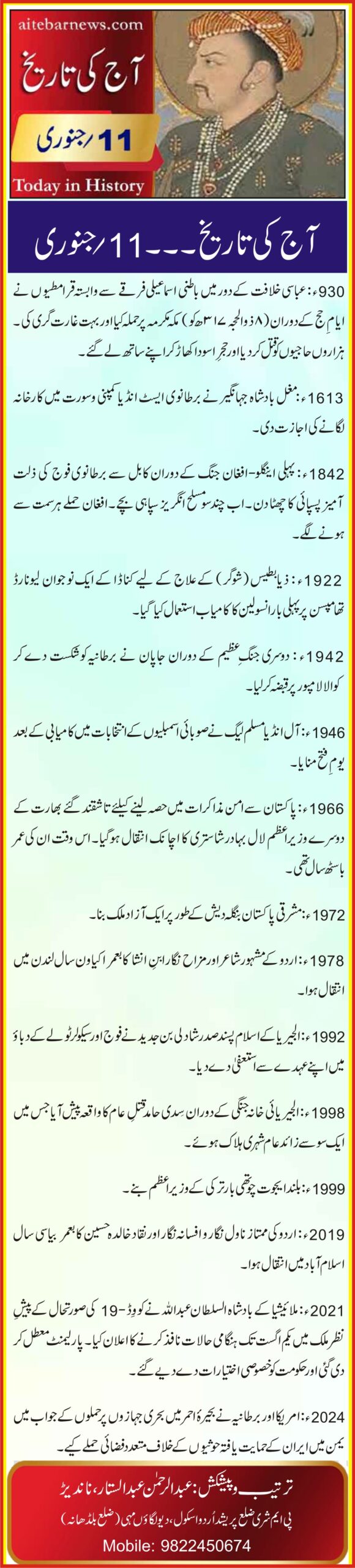 آج کی تاریخ۔۔۔11؍جنوری