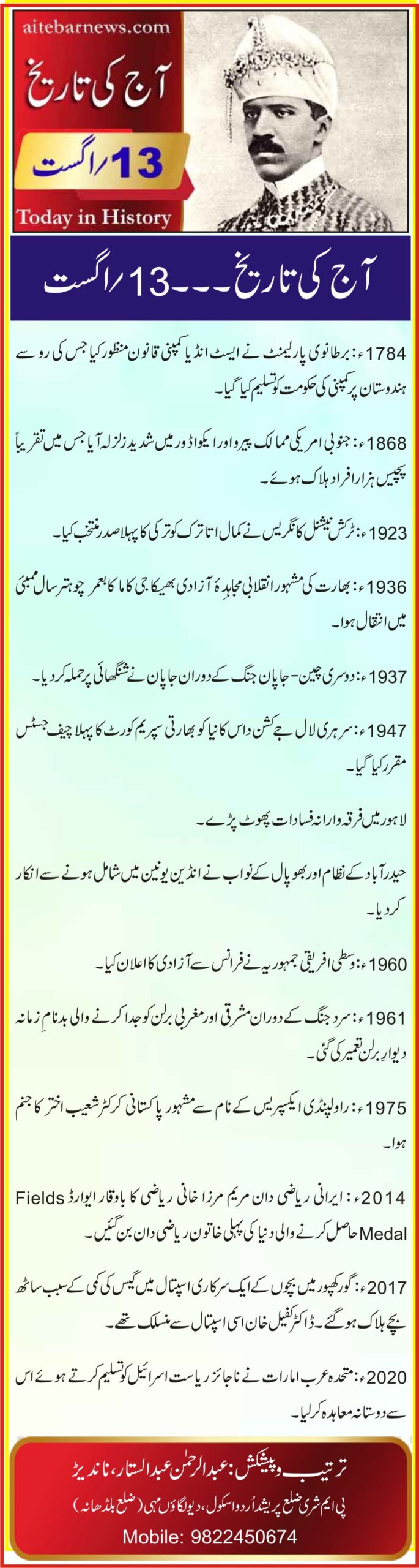 آج کی تاریخ۔۔۔13؍اگست