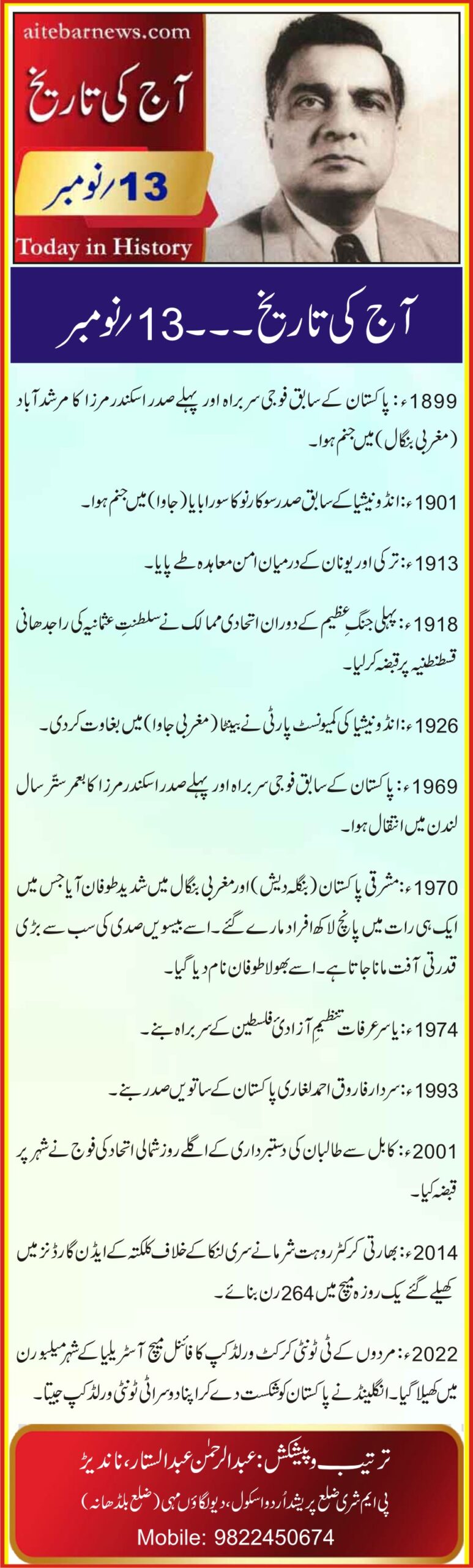 آج کی تاریخ۔۔۔13؍نومبر