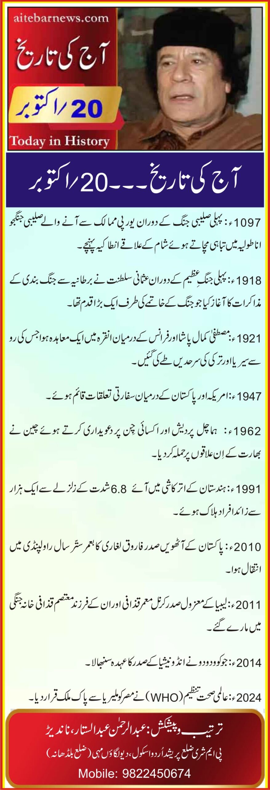 آج کی تاریخ۔۔۔20؍اکتوبر