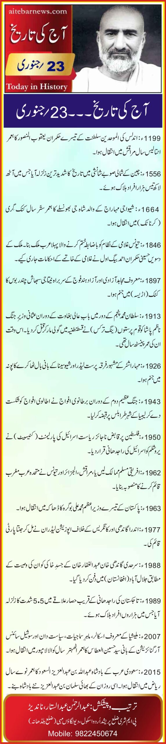 آج کی تاریخ۔۔۔23؍جنوری