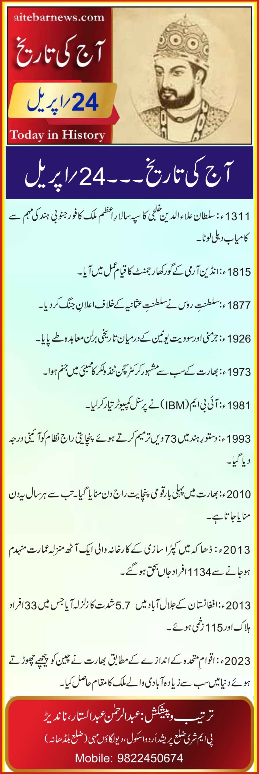 آج کی تاریخ۔۔۔24؍اپریل