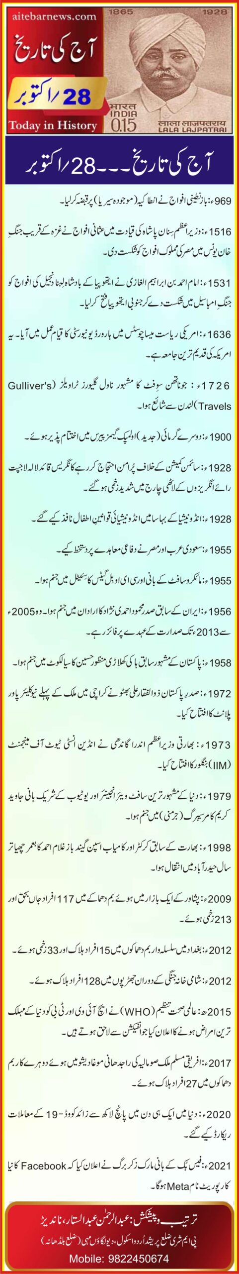 آج کی تاریخ۔۔۔28؍اکتوبر