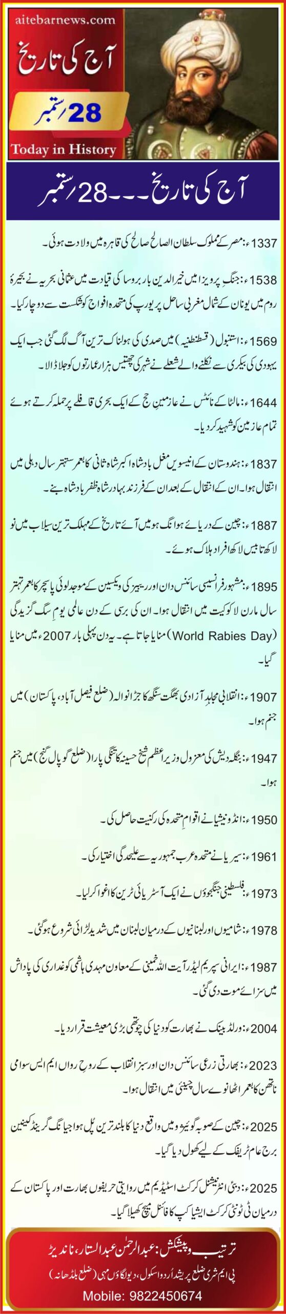 آج کی تاریخ۔۔۔28؍ستمبر
