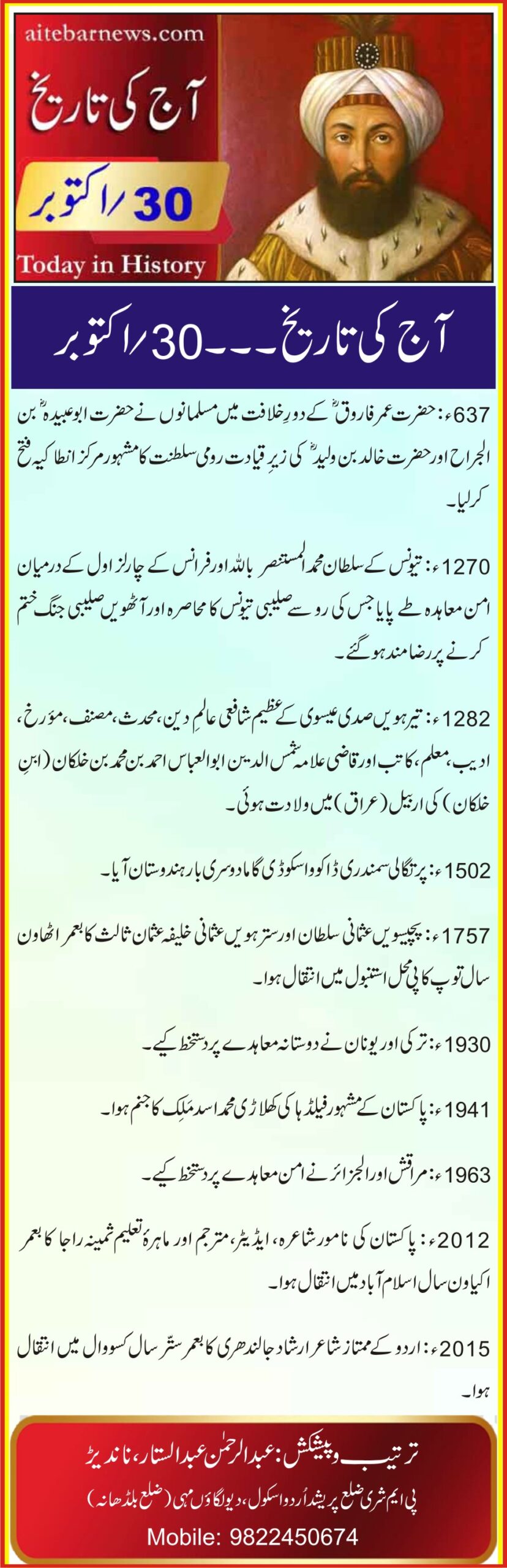 آج کی تاریخ۔۔۔30؍اکتوبر