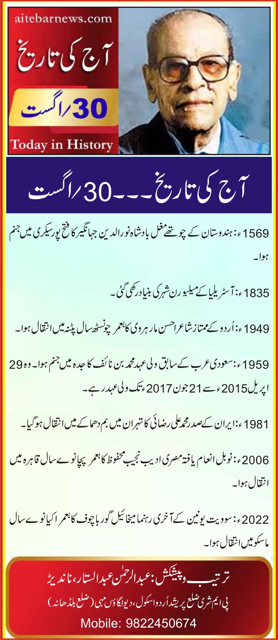 آج کی تاریخ۔۔۔30؍اگست