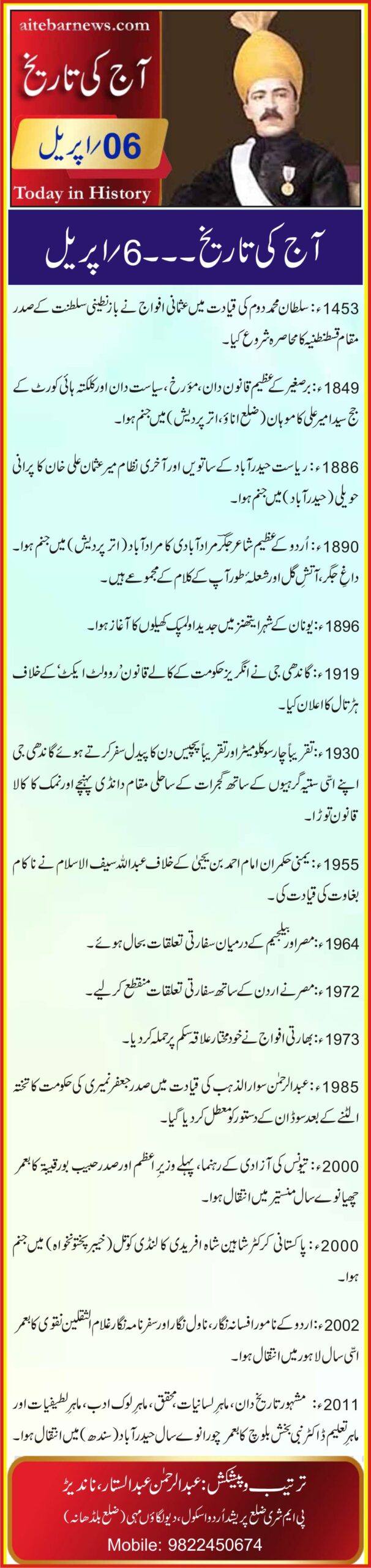 آج کی تاریخ۔۔۔6؍اپریل