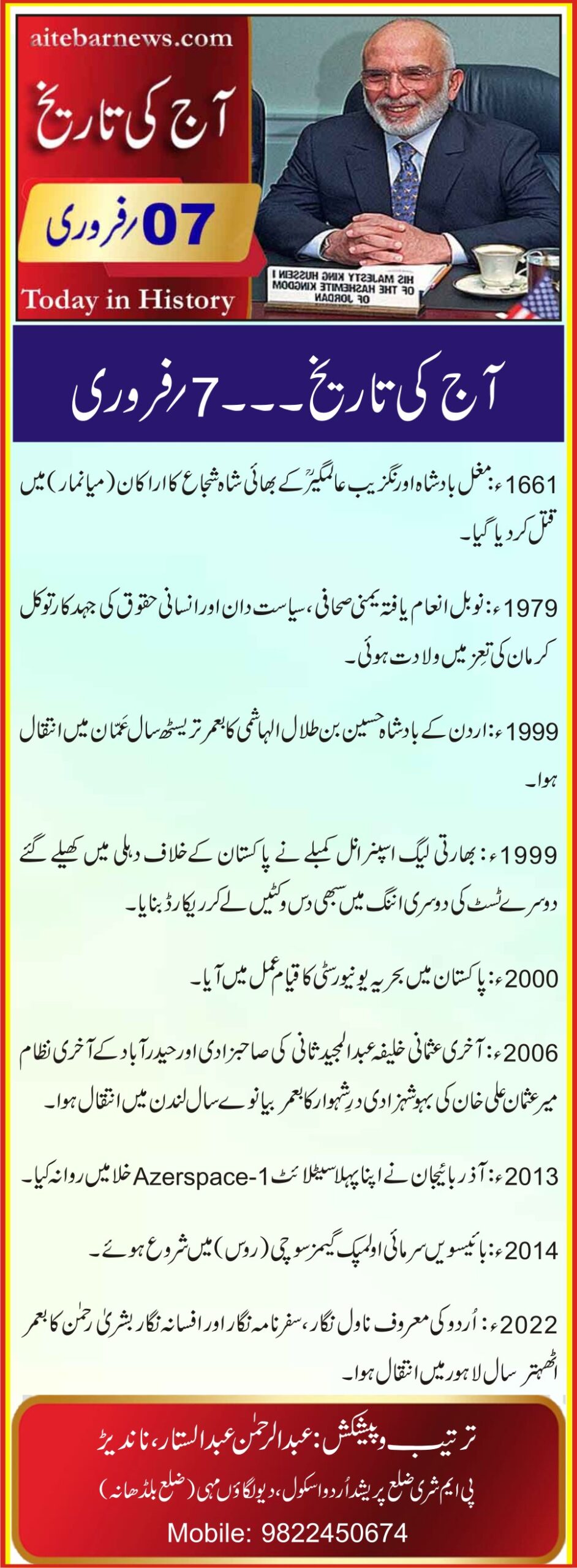 آج کی تاریخ۔۔۔7؍فروری