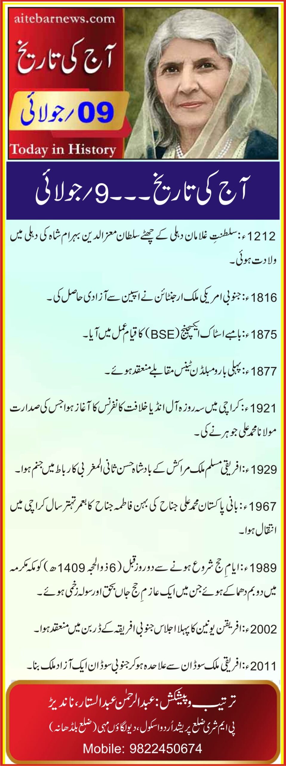آج کی تاریخ۔۔۔9؍جولائی
