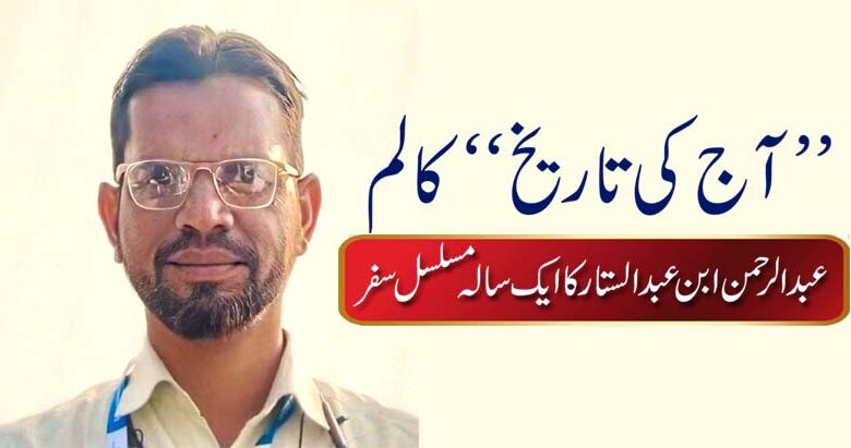 ’’آج کی تاریخ‘‘ کالم: عبدالرحمن ابن عبدالستار کا ایک سالہ مسلسل سفر