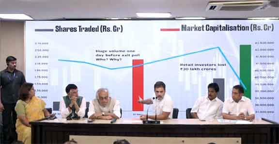 اسٹاک مارکیٹ میں سرمایہ کاروں کا 30 لاکھ کروڑ کا نقصان، جے پی سی تحقیقات کرے: راہل گاندھی