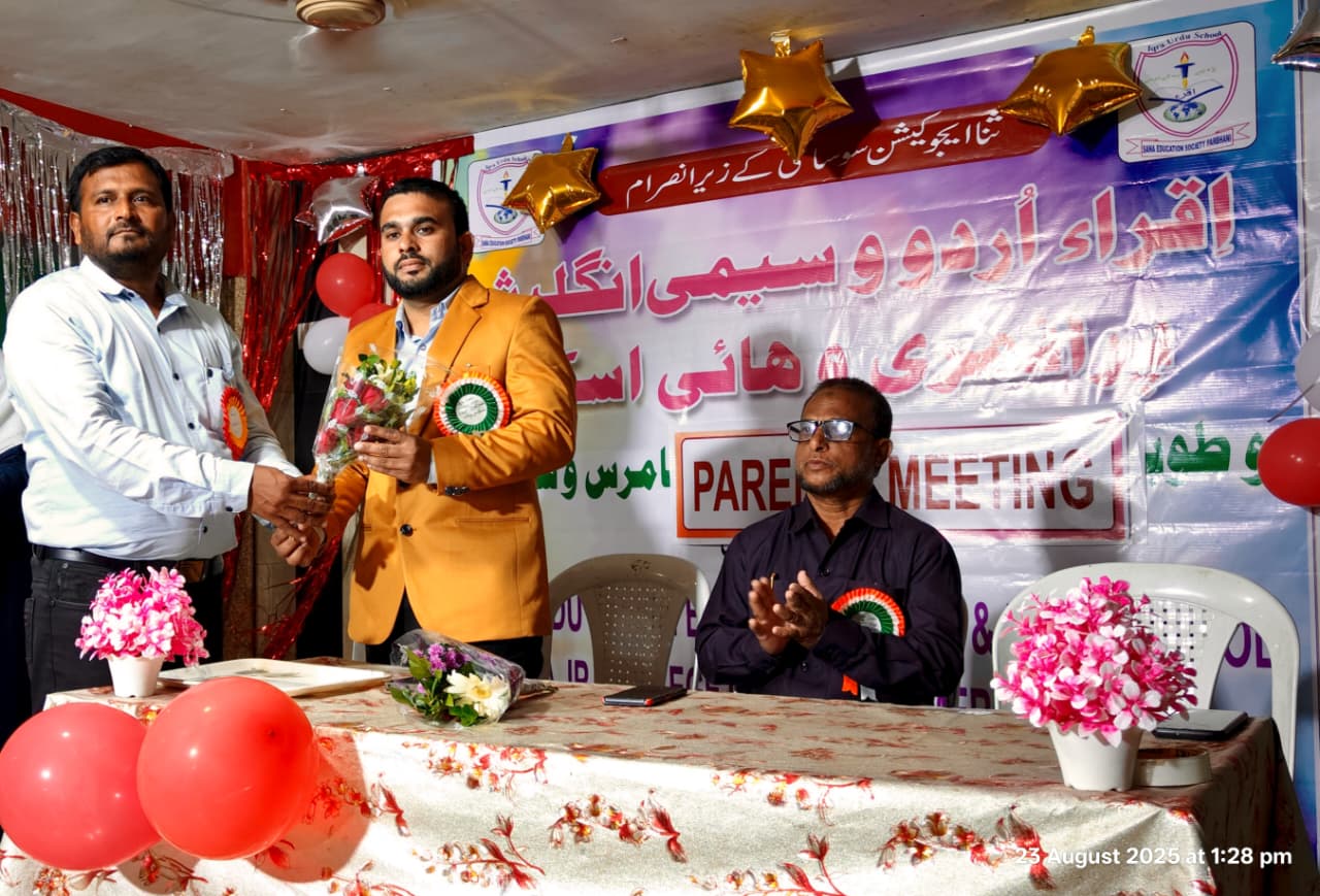 پربھنی:24؍اگست (ضلع نامہ نگار اعتبار نیوز محمد سرور شریف ) 23 اگست 2025 (ہفتہ)اقراء کیمپس، کامیاب فنکشن ہال، سبھیدار نگر، پربھنی میں والدین و اساتذہ کی ایک اہم میٹنگ منعقد ہوئی۔پروگرام کی نظامت محترمہ حاجرا میڈم نے کی اور میٹنگ کے اغراض و مقاصد بیان کیے۔اس کے بعد ہیڈ ماسٹر محترم محمد رئیس سر نے خطاب فرمایا۔ انہوں نے ثناء ایجوکیشن سوسائٹی پربھنی کے تحت چلنے والے پانچ تعلیمی اداروں کا تعارف پیش کیا: