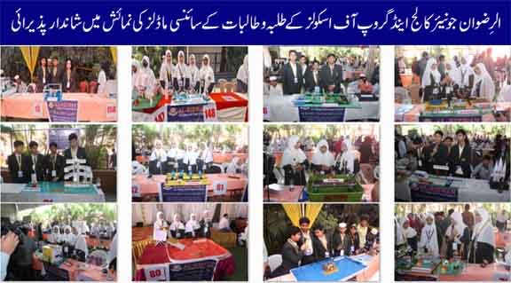 الرِضوان جونیئر کالج اینڈ گروپ آف اسکولز کے طلبہ و طالبات کے سائنسی ماڈلز کی نمائش میں شاندار پذیرائی
