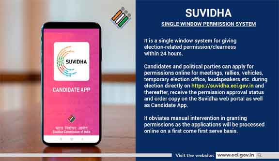اینڈرائڈ سْویدھا 2.0 موبائل ایپ کا لنک: https: //play.google.com/store/apps/detailsid=suvidha.eci.gov.in.candidateapp&pli=1