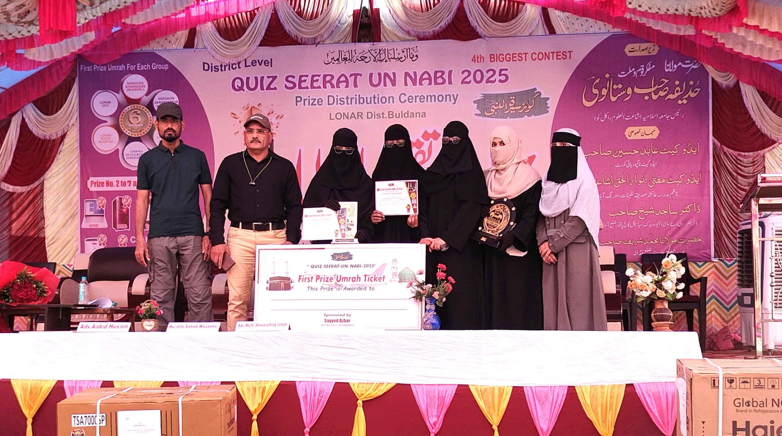 کھام گاؤں، 7اکتوبر(راست)ڈاکٹر ذاکر حسین ہائی اسکول و جونیئر کالج لونار اور جمعیت علماء ہند لونار،ضلع بلڈانہ کے زیر اہتمام ضلع سطحی سیرت النبی ﷺ کوئز مقابلہ نہایت شان و شوکت کے ساتھ اختتام پذیر ہوا۔اس عظیم الشان مقابلے کا مقصد طلبہ و طالبات میں سیرتِ رسول ﷺ کو جاننے، سمجھنے اور اسے عملی زندگی میں نافذ کرنے کا جذبہ بیدار کرنا تھا۔اس سال ضلع کے مختلف تعلقوں کے 13,000 طلبہ و طالبات نے اس علمی و دینی مقابلے میں شرکت کی۔ پہلے مرحلے میں انجمن ہائی اسکول و جونیئر کالج کھام گاؤں کے سیکڑوں طلبہ نے بھرپور حصہ لیا، جن میں سے منتخب 800 طلبہ کو دوسرے مرحلے کے لیے لونار بلایا گیا۔دوسرے مرحلے میں طلبہ کے درمیان نہایت سخت، سنجیدہ اور پرجوش مقابلہ ہوا۔ نتائج کے اعلان کے موقع پر کامیاب طلبہ کو پرکشش انعامات کے ساتھ 7 طلبہ کے لیے عمرہ ٹور ٹکٹ دینے کا اعلان کیا گیا۔الحمدللہ! انجمن ہائی اسکول و جونیئر کالج کھام گاؤں کی ہونہار طالبہ عمارہ تبسم شیخ فاروق نے شاندار کارکردگی کا مظاہرہ کرتے ہوئے پہلا انعام (عمرہ ٹکٹ) حاصل کیا۔اسی ادارے کی دیگر طالبات میں ترنم سید ہارون نے دوسرا انعام (فریج) اور جمیلہ کشف اظہارالحق نے تیسرا انعام (واشنگ مشین) حاصل کیا۔مزید برآں، 46 طلبہ کو ان کے سیریل نمبر کے مطابق 1000 روپے نقد انعام، کتابیں اور سرٹیفکیٹس سے نوازا گیا۔پروگرام کا اختتام نہایت پُرمسرت، منظم اور روح پرور ماحول میں ہوا۔ اس موقع پر پانچ ہزار سے زائد طلبہ، اساتذہ، والدین اور معزز شخصیات نے شرکت کی۔تقریب کے مہمانِ خصوصی مولانا محمد حذیفہ وستانوی (جامعہ اسلامیہ اشاعت العلوم، اکل کووا) تھے، جبکہ مہمانانِ اعزاز میں مولانا انوارالحق صاحب، ڈاکٹر شیخ ساجد، ایڈوکیٹ عابد حسین، مولانا شریف خان بلڈھانہ اور مولانا نصراللہ خان رحمانی شامل تھے۔ علمائے کرام نے اپنی تقاریر میں رسولِ اکرم ﷺ کی بعثت کے مقاصد پر روشنی ڈالتے ہوئے فرمایا کہ نبی کریم ﷺ کی آمد کا مقصد "انسانوں کو اللہ کی بندگی کی طرف بلانا، اخلاق و کردار کی اصلاح، عدل و انصاف کا قیام، امن و محبت اور رحمت کا پیغام عام کرنا تھا، تاکہ انسانیت کو جہالت و گمراہی سے نجات ملے اور ایک صالح معاشرہ تشکیل پائے”۔پروگرام کے چیف کنڈکٹر ڈاکٹر فیروز خان (پرنسپل، ڈاکٹر ذاکر حسین ہائی اسکول و جونیئر کالج لونار) تھے، جن کی نگرانی میں پورا پروگرام نہایت نظم و ضبط کے ساتھ کامیابی سے مکمل ہوا۔دوسرے دن کیمپس کی جانب سے، طلبہ کی اس شاندار کامیابی پر انجمن مفید الاسلام سوسائٹی کے صدر ڈاکٹر وقارالحق خان، پرنسپل احفاظ الحق خان، وائس پرنسپل محمد عمیر خان، سپروائزر شکیل احمد، برانچ انچارج شازیہ پروین، کلچرل کمیٹی کنوینر فضیل ارشد خان اور اساتذہ عارف زبیر انصاری، خبیب تابش، ابراہیم قریشی، سلیم مرزا، سید جلیس، احراراللہ خان، اسلم خان، نجیب الرحمن خان، سہیل فرقان ، انس نبیل، ذاہد رضا، عبدالعظیم ، افضل حسین ، صالحہ انجم، جویریہ خانم اور رقیہ صالحہ شیخ کے علاوہ دیگر اساتذہ نے مبارکبادی کے ساتھ طلبہ کے روشن مستقبل کے لیے نیک تمناؤں کا اظہار کیا۔یہ کامیابی نہ صرف ادارے بلکہ شہرِ کھام گاؤں کے لیے بھی باعثِ فخر و افتخار قرار دی جا رہی ہے۔