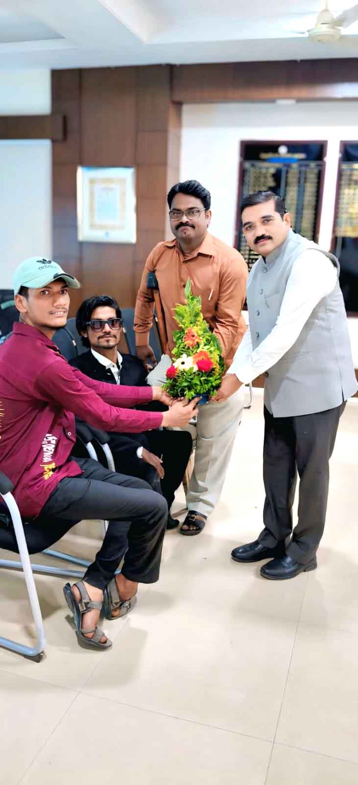 ملکاپور :13/ اپریل: ( محمد احسان سر ) بلڈھانہ ،ضلع میں نئے تعینات ہونے والے ضلع کلکٹر ڈاکٹر پروین کمار دیور کی انسان دوست اور حساس طرزِ عمل کو سراہتے ہوئے اپانگ جنتا دل سماجی تنظیم نے انہیں خراجِ تحسین پیش کیا ہے. تفصیلات کے مطابق، ضلع کلکٹر کا چارج سنبھالنے کے بعد آج دیویانگ جنتا دل تنظیم کے ریاستی سکریٹری کلیم شیخ اپنے دیگر معذور ساتھیوں کے ہمراہ ملاقات کے لیے ضلع کلکٹر دفتر پہنچے۔ جیسے ہی ڈاکٹر دیور نے سی سی ٹی وی کے ذریعے ان کی آمد دیکھی، انہوں نے فوراً انہیں اپنے کیبن میں مدعو کیا اور خود باہر آکر ان کا استقبال کیا. اس موقع پر ضلع کلکٹر نے معذور افراد کو عزت دیتے ہوئے انہیں کرسی پر بٹھانے پر زور دیا اور ان کے ساتھ نہایت خوش اخلاقی سے پیش آئے۔ اس عمل کو حاضرین نے بے حد سراہا اور اسے ایک مثبت پیغام قرار دیا. بعد ازاں وفد کی جانب سے پیش کیا گیا گلدستہ ڈاکٹر دیور نے قبول کیا۔ ملاقات کے دوران انہوں نے کلیم شیخ کو اپنا ذاتی رابطہ نمبر بھی فراہم کیا اور یقین دہانی کرائی کہ ضلع کے معذور افراد سمیت تمام شہریوں کے مسائل کے حل کے لیے وہ ہر وقت دستیاب رہیں گے. اپانگ جنتا دل سماجی تنظیم نے ضلع کلکٹر کے اس رویے کو قابلِ تقلید قرار دیتے ہوئے امید ظاہر کی کہ ان کی قیادت میں ضلع بلڈھانہ میں عوامی مسائل کے حل کو ترجیح دی جائے گی.