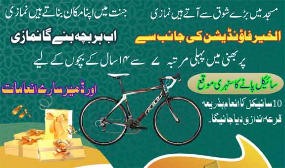 الخیر فاؤنڈیشن ہربھنی کی جانب سے پابندی سے پانچ وقت کی نماز پڑھنے والے بچوں کو بطور انعام سائیکل دینے کا اعلان