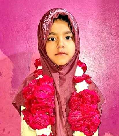 بلڈھانہ ۲۶ فروری (نمائندہ) : مہرہ خورد کی ننھی طالبہ برین عرشہ محمد عتیق الرحمٰن نے اس رمضان المبارک میں اپنی زندگی کا پہلا روزہ رکھا۔ برین عرشہ نے بڑے ذوق و شوق سے سحری کی اور دن بھر بھوک و پیاس کی شدت برداشت کرکے اپنا روزہ مکمل کرتے ہوئے سب کو حیرت انگیز خوشی سے دوچار کر دیا۔ برین عرشہ کے لیے ان کے مکان پر روزہ رکھائی کی تقریب منعقد کی گئی اور خصوصی افطار ترتیب دیا گیا۔ برین عرشہ کی روزہ رکھائی پر ان کے والدین، خاندان و محلے کے بزرگوں، اساتذہ وغیرہ نے انہیں مبارکباد دی اور اپنی دعاؤں اور تحفوں سے نوازا۔ ادارہ اعتبار نیوز بھی برین عرشہ کو ڈھیر ساری مبارکباد پیش کرتا ہےاور ان کی سلامتی و روشن مستقبل کے لیے دعا گو ہے۔