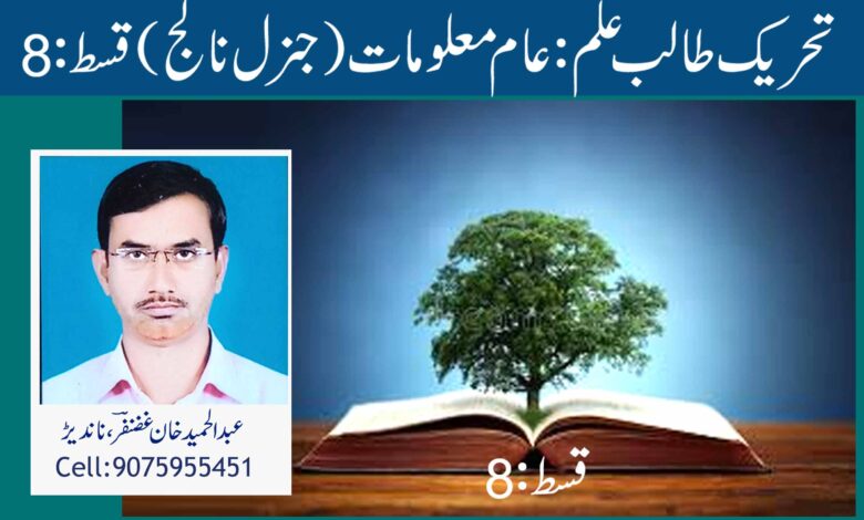 تحریک طالب علم: عام معلومات ( جنرل نالج) قسط:8