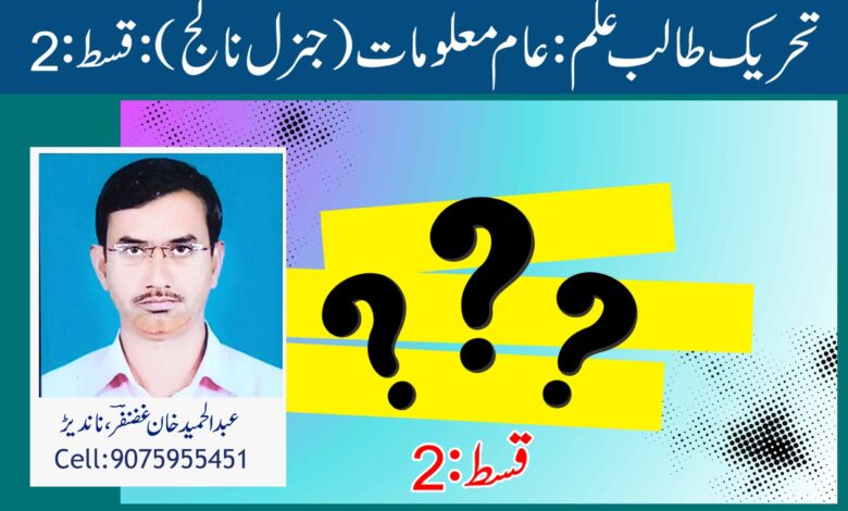 تحریک طالب علم: عام معلومات ( جنرل نالج) : قسط : 2