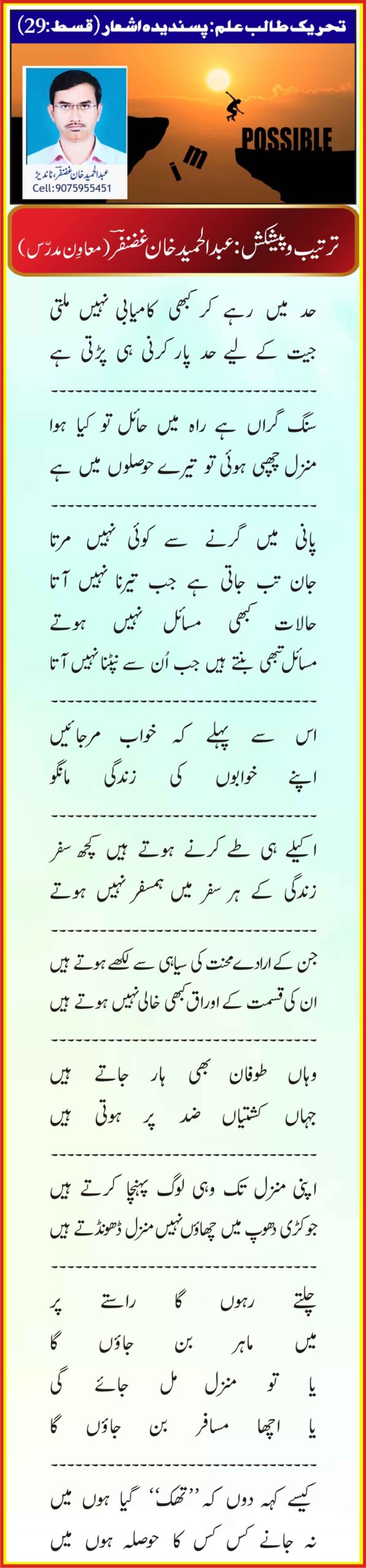 تحریک طالب علم: پسندیدہ اشعار (قسط:29)