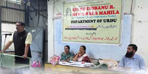 ناندیڑ:29؍اگست(راست) بروز جمعرات 28/ اگست2025 کو ” کے۔آر۔ایم۔مہیلا مہاودیالہ” ناندیڑ،میں پرنسپل ڈاکٹروجیہ دیشمکھ صاحبہ کی صدارت میں شعبہ اُردو کی جانب سے ایک توضیحی لیکچر کا انعقاد عمل میں آیا۔مہمانِ خصوصی جناب ڈاکٹر شیخ محبوب ثاقب (پروفیسر،ریسرچ گائیڈ و صدر شعبہ اردو شواجی مہاودیالیہ ،اودگیر)نے اُردو زبان کی اہمیت بتاتے ہوئے ”جدید افسانہ“ اس موضوع پر اپنے منفرد انداز میں طالبات سے مخاطب ہوتے ہوئے موضوع کی وضاحت کی۔صدارتی خطاب میں پرنسپل صاحبہ نے شعبہ اُردو کی مسلسل کاوشوں کی ستائش کی اُردو زبان کی مٹھاس پر اظہار خیال کرتے ہوئے اُردو زبان سے اپنی محبت کا اظہار کیا۔دورانِ پروگرام بی ۔اے (سال اول و سوم)کی طالبات نے مجاہد آزادیِ ہند کی شخصیات پر تیار کردہ ویواری رسالہ جن کا اجراء مہمان خصوصی کے ہاتھوں کیا گیا۔پروگرام کی نظامت کی ذمہ داری ردا ماہین (بی اے سال سوم)نعت سائمہ خاتون(بی اے سال اول)مہمان کا تعارف سمرین بیگم (بی اے سال سوم)اور اظہار تشکر الفشاء(بی اے سال اول)نے اداکیا۔تیز بارش کے باوجود پروگرم میں کثیر تعداد میں طالبات، کے علاو ہ شیخ ہماء کوثر صدر شعبہ اردو،محمد اسمعیل،فرزانہ بیگم، Dr.V.R.Powde,Dr.B.P.Kachre(Dept of Marathi)