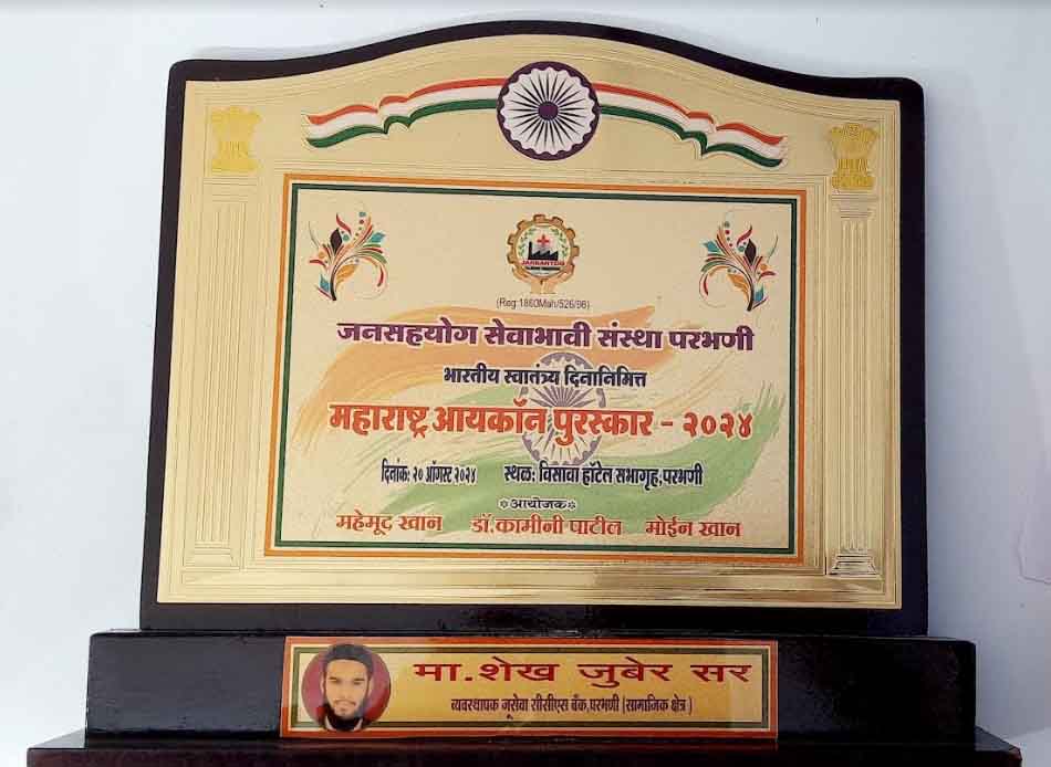 جن سیوا بینک کے منتظم شیخ زبیر کو مہاراشٹر آئیکان ایوارڈ سے نوازا گیا
