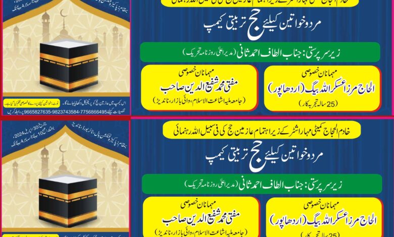 خادم الحجاج کمیٹی مہاراشٹر کے زیر اہتمام 30 اپریل کو حج، عمرہ و زیارت مدینہ کا تربیتی کیمپ