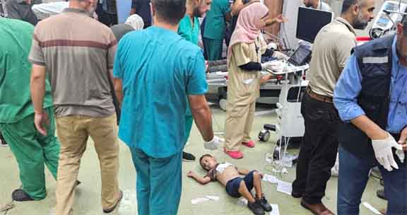 خان یونس:17؍جولائیـ:غزہ کی پٹی کے جنوبی شہر خان یونس کے مرکز میں واقع مواصی اور نصیرات کیمپ میں منگل کے روز صیہونی قابض افواج کے ہاتھوں قتل عام میں 53 شہری شہید اور درجنوں زخمی ہوگئے۔آج منگل کو اسرائیلی بربریت میں خان یونس میں المواصی کے مقام پر 17 شہری شہید اور 26 دیگر زخمی ہوئے۔مقامی ذرائع نے ہمارے نامہ نگار کو بتایا کہ قابض فوج کے طیاروں نے خان یونس میں العطار اسٹریٹ پر بے گھر افراد سے بھرے علاقے میں ایک کار پر بمباری کی، جس سے بچوں اور خواتین سمیت 13 افراد شہید اور دیگر زخمی ہوئے۔ذرائع نے بتایا کہ قتل عام اردن کے ہسپتال کے قریب ہوا جس کے بعد زخمیوں کوہسپتال لے جایا گیا۔خان یونس کے مغرب میں ابو عکر خاندان کے گھر پر قابض طیاروں کی بمباری سے ایک شہری اور اس کی دو پوتیاں شہید ہو گئیں۔شہدا میں جمال ابو عکر اور ان کی دو پوتیاں ماریہ اور میرال بلال ابو عکر، جن کی عمریں 5 اور 6 سال تھیں۔نصیرات کیمپ میں قابض فوج کی طرف سے نصیرات کے جنوب میں واقع کیمپ 2 میں ہزاروں بے گھر افراد کی رہائش گاہ پر ایک اسکول میں قتل عام کے نتیجے میں 23 شہری شہید اور 73 زخمی ہوگئے۔میڈیا ذرائع نے بتایا کہ صحافی محمد مشمش کو نصیرات میں قابض فوج کے ہاتھوں قتل عام کے دوران شہید کیا گیا۔سرکاری میڈیا آفس نے کہا کہ یہ قتل عام قابض فوج کی طرف سے ہمارے فلسطینی عوام کے خلاف مسلسل دسویں ماہ سے شروع کی گئی نسل کشی کے جرم کے تسلسل کے طور پر سامنے آئے ہیں۔دفتر نے ایک بیان میں کہا کہ "اسرائیلی قابض فوج نصیرات کیمپ میں انروا کے اسکولوں میں بے گھر ہونے والے شہریوں کو نشانہ بنانے اور بمباری کرنے پر بہت زیادہ توجہ مرکوز کر رہی ہے۔نصیرات کیمپ میں 80 ہزار سے زیادہ بیگھر فلسطینی عارضی طور پر رہائش پذیر ہیں۔