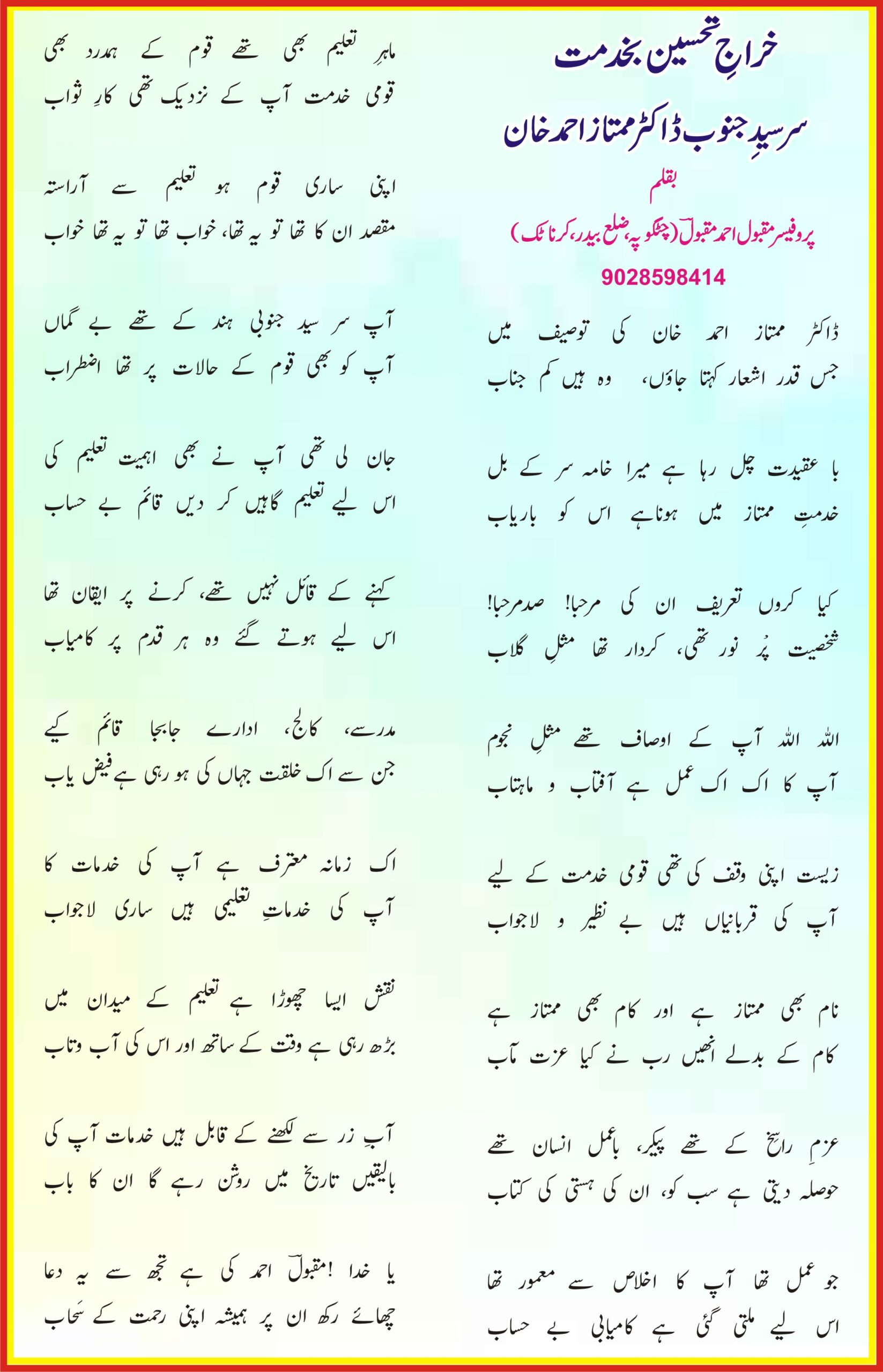 خراجِ تحسین بخدمت: سرسیدِ جنوب ڈاکٹر ممتاز احمد خان
