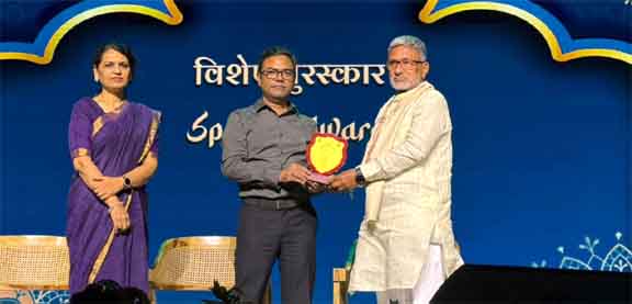 شولاپور:9؍اکتوبر( آفرین شیخ)مہاراشٹر اسٹیٹ اُردُو ساہتیہ اکیڈمی ممبئی کی جانب سے شہر شولاپور کے سینیئر ڈرامہ فنکار ، معروف ڈراما نگار، ہدایتکار، اُردُو گھر شولاپور کے ناظم ،سٹی ژن اُردُو ہائی اسکول کے وظیفہ یاب صدر مدرس، آرٹ اکیڈمی و گلیکسی اسوسی ایشن کے صدر "راجہ باغبان” سر کو، مراٹھی ڈراموں کے اُردُو ترجمے کے مجموعے "ڈھول بج رہا ہے” کو 2019 کے ریاستی سطح کے انعام سے نوازا گیا۔ اس کے ساتھ ساتھ موصوف کی شعبے اُردُو ڈراما میں گراں قدر خدمات کے اعتراف میں 2022 کے خصوصی اعزاز سے سرفراز کیا گیا۔ ریاستی اُردُو ڈراما مقابلوں کے موقع پر شعبہ اُردُو ڈراما اور تعلیمی شعبے میں گراں قدر خدمات کے اعتراف میں "خصوصی ایوارڈ 2025” سے نوازا گیا۔ مہاراشٹر اسٹیٹ اُردُو ساہتیہ اکیڈمی کی گولڈن جوبلی تقریب کے موقع پر منعقد کیے گئے شاندار پروگرام میں راجہ صاحب احمد صاحب باغبان سر کو مہمانوں کے دستِ مبارک یہ دونوں اعزازات تفویض کیے گئے۔ راجا باغبان سر کو تفویض کیے گئے اس ایوارڈ کے مدّ نظر، ممبئی، بھیونڈی، ناگپور، ریئگڑھ اور دِیگر مقامات کی مشہور و معروف شخصیات، کے ساتھ ساتھ شہر شولاپور کے ڈراما فنکاران ، بالخصوص ساحر نداف، تحسین احمد شیخ، ڈاکٹر ہارون رشید باغبان، انتخاب شیخ، ڈاکٹر شفیع چوبدار، مزمل شیخ، یوسف عالم صدیقی، اسحٰق باٹگھر، صادق باغبان، عمر فاروق باغبان، مُحمّد ایاز شیخ، ذوالکفل باغبان، مجید شیخ اور دیگر شخصیات نے راجہ باغبان سر کو دلی مبارکباد پیش کی اور نیک خواہشات کا اظہار کیا۔