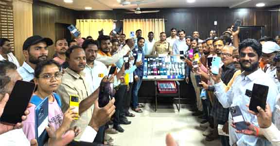 ناندیڑ ضلع میں گمشدہ موبائلز کے منجملہ 28 لاکھ 25 ہزار 300 روپئے مالیتی 164؍ اینڈرائیڈ موبائل ڈھونڈ نکالے