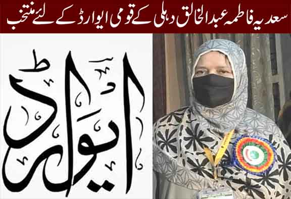سعدیہ فاطمہ عبدالخالق دہلی کے قومی ایوارڈ کے لئے منتخب