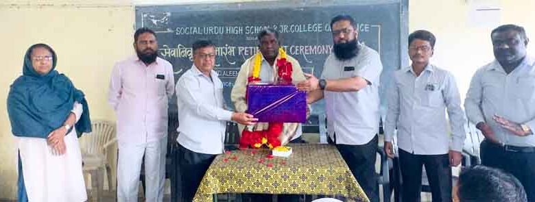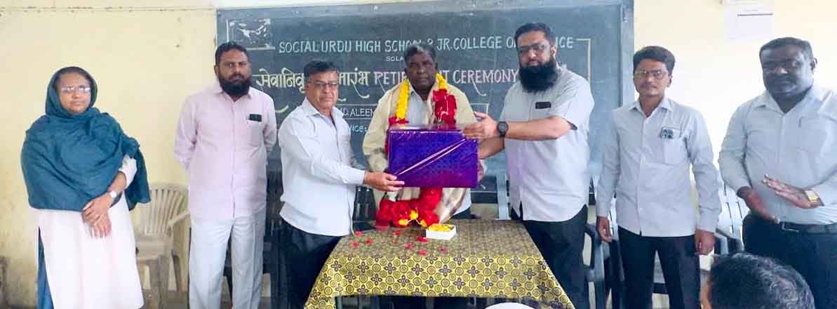 ​سولاپور: 31؍جنوری(سلطان اختر ) سوشل اردو ہائی اسکول و جونیئر کالج آف سائنس کے ہر دلعزیز اور فعال معلم محمد علیم محمد حسین شیخ اپنی ۳۲ سالہ طویل اور مثالی تدریسی خدمات مکمل کرنے کے بعد گزشتہ روز (بروز ہفتہ) ملازمت سے بحسن خوبی سبکدوش ہو گئے۔ اس باوقار موقع پر ان کے اعزاز میں اسکول کے ہال میں ایک پروقار الوداعی تقریب کا انعقاد کیا گیا، جس کی صدارت پرنسپل رسول چودھری نے کی۔​اس تقریب میں اسٹیج پر صدرِ محفل پرنسپل رسول چودھری کے ہمراہ نائب صدر مدرس امتیاز شابدی، سپروائزر یاسمین شیخ، کلیم کرجگی، رضوان شیخ، الطاف حسین کمٹھے اور دیگر معززین رونق افروز تھے۔ تقریب کی نظامت کے فرائض رفیق نلامندو نے روایتی خوش اسلوبی اور والہانہ انداز میں انجام دیے۔​جونیئر کالج اور ہائی اسکول کے اساتذہ نے محمد علیم شیخ سر کی تعلیمی و تدریسی خدمات کا بھرپور اعتراف کیا۔ مقررین نے کہا کہ علیم سر نے اپنی پوری پیشہ ورانہ زندگی طلبہ کی تعمیر و ترقی اور اسکول کے نظم و ضبط کے لیے وقف رکھی۔ اس موقع پر فیزیکل معلم شیخ علیم سر کی گلپوشی کی گئی اور اسکول کی جانب سے انہیں الوداعی تحائف پیش کیے گئے۔​پرنسپل رسول چودھری نے اپنے صدارتی خطاب میں موصوف کی خدمات کو "قابلِ تحسین” قرار دیتے ہوئے کہا کہ علیم ایک مخلص استاد کی سبکدوشی ادارے کے لیے ایک خلا کی مانند ہوتی ہے، تاہم ان کے سکھائے ہوئے اصول ہمیشہ مشعلِ راہ رہیں گے۔ انہوں نے علیم شیخ کی صحت مند اور خوشحال مستقبل کے لیے نیک خواہشات کا اظہار کیا۔ محمد علیم شیخ نے اسٹاف کی محبتوں پر صمیمِ قلب سے شکریہ ادا کیا۔ انہوں نے اپنے طویل سفر کی یادیں تازہ کرتے ہوئے تمام ساتھیوں کا تعاون یاد کیا۔ اس تقریب میں جملہ اسٹاف نے کثیر تعداد میں شرکت کر کے علیم سر کو والہانہ انداز میں الوداع کہا۔