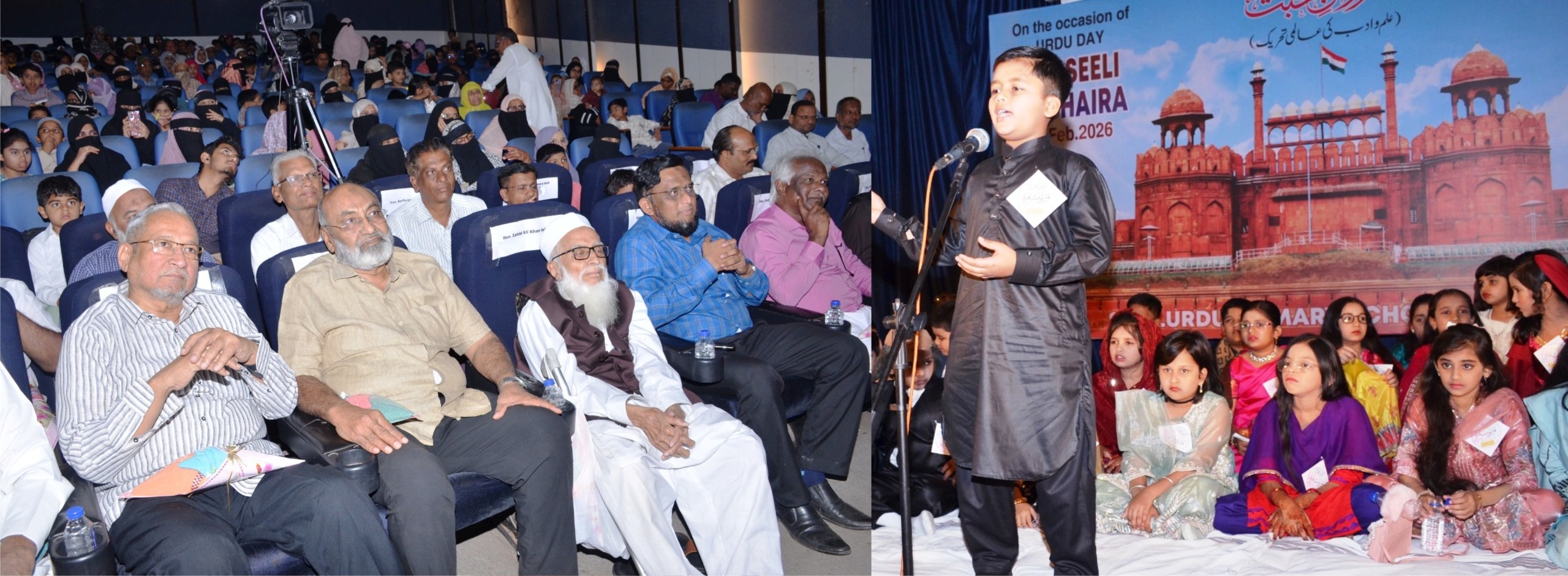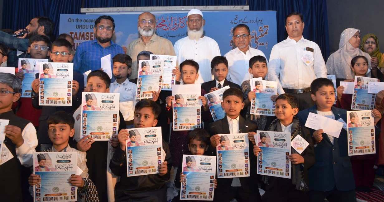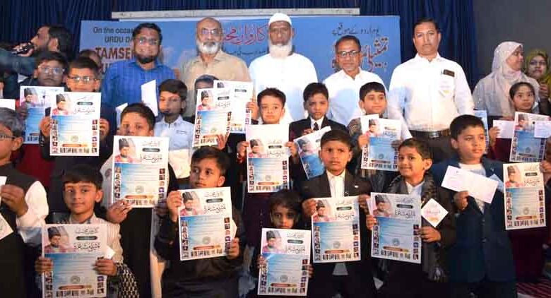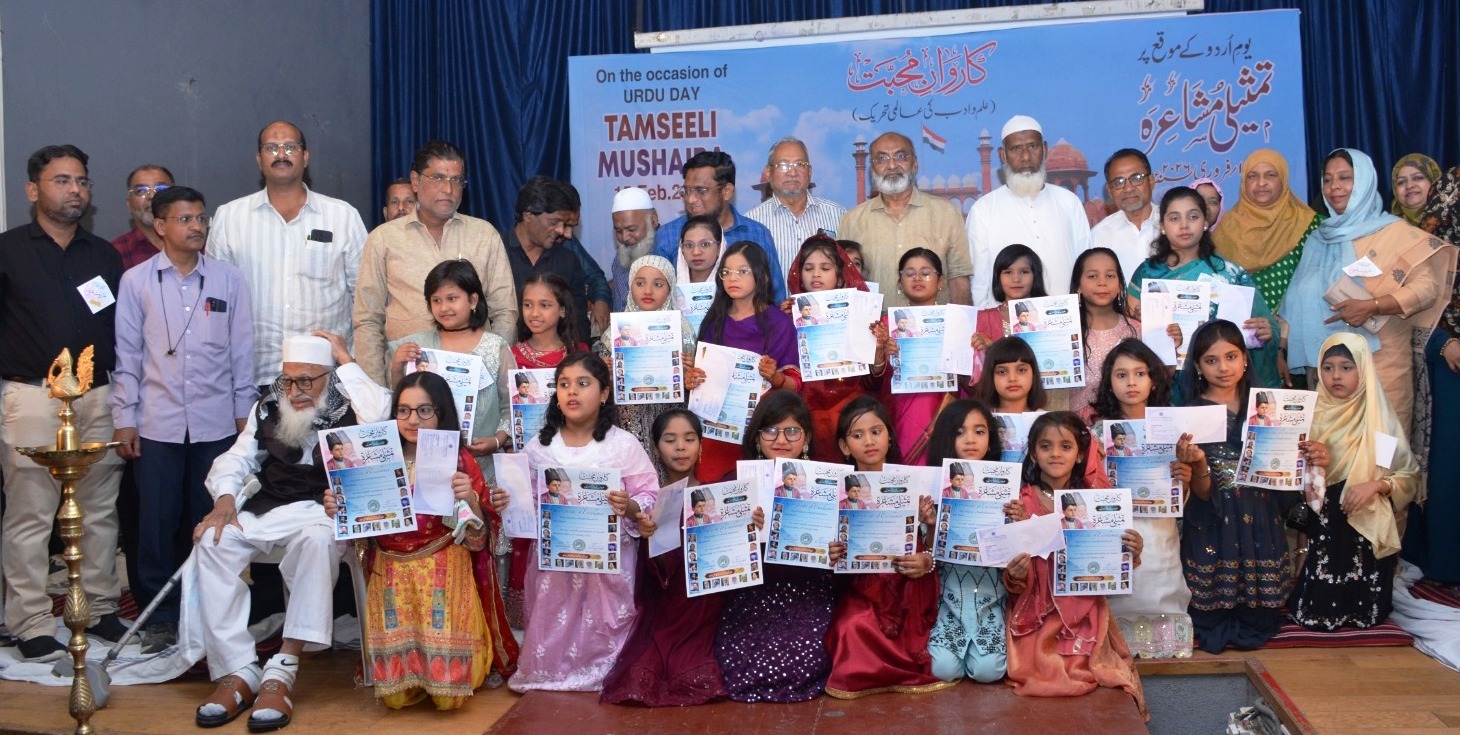 سولاپور:18؍فروری (اِقبال باغبان ) : قومی یوم اردو دن کے موقع پرنرمل کمارپھڑکلے ہال،سولاپور میں سولا پور سوشل اردو پرائمری اسکول کی جانب سے تمثیلی مشاعرے کا شاندار اور کامیاب انعقاد کیا گیا۔ اس مشاعرے میں ادارے کے چیرمن ڈاکٹر اخلاق احمد وڈوان کی صدارت میں مہمان خصوصی ارون شرما اور ادارے کے دیگر ممبران حاجی داؤد منگل گری، سیکرٹری ریاض چنڈر کی، ٹرسٹی زاہد علی خان، اشفاق ساتھ کھیڑ، امتیاز شیخ، ایڈوکیٹ عبدالجبار شیخ، سرفراز پٹھان، صدر مدرس عرفان کیرول کی موجودگی میں ہوا۔مشاعرے کا آغاز ادارے کے چیرمن اور تمام ممبران کے ہاتھوں شمع جلا کر مشاعرے کا اغاز کیا گیا۔ صدر مدرس ڈاکٹر آصف اقبال نے مہمانوں کا تعارف پیش کیا۔شرما سویٹس کے مالک ارون شرما نے بچوں کی شعری قابلیت کو خوب سراہا اور کہا کہ اردو زبان کا جادو سبھی کو متاثر کرتا ہے ۔ تقریبا 50 بچوں نے الگ الگ شاعروں کے کلام پیش کیے۔ ان ننھے منے بچوں نے بہت اچھے اور خوبصورت انداز میں اپنا کلام پیش کیا۔ سبھی مہمانان نے بچوں کی خوب ستائش کی اور مبارکبادی دی۔ اقصیٰ شیخ اور عائشہ شاہ آ باد نے اپنی خوبصورت اور بہترین نظامت سے مشاعرے کو عروج پر پہنچایا۔ مشاعرے کو کامیاب بنانے کے لیے نکہت شیخ ، انیسہ شیخ ، ریحانہ شیخ ، رضوانہ پیارے، قدسیہ منیار ، نور جہاں باغمارو ، شیخ شہر بانو ، شاہ باد ام الفر ، شبانہ قاضی ، وقار النسا بندوق والے ، ثمینہ منیار ، تسکین کلبرگی ، شیلیدار مہ جبین ، غوثیہ ہوٹگی ، حمیرہ شیخ ، ناہیدہ شیخ ، مشتاق گدوال ، سمیر احمد نیچلکر ، عاقدشیخ ، عرفان پٹیل، معیز سراج احمد ، ضمیر ملانی ، عبدالوہاب چاندہ وغیرہ نے خوب محنت کی. معیز سراج احمد نے اظہار تشکر پیش کیا۔