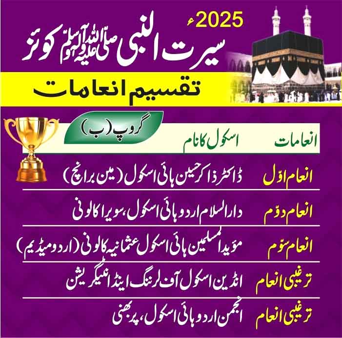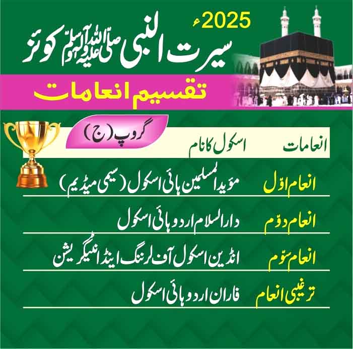 سیرت النبی صلی اللہ علیہ وسلم کوئز تقریب کا عظیم الشان جلسہ تقسیم انعامات