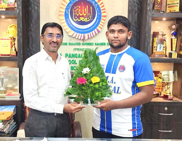 شولاپور :17؍اکتوبر( آفرین شیخ ) حال ہی میں احمد نگر تریمورتی سنکول نيواسہ میں انٹر اسکول پونے ڈویژنل جوڈو کے مقابلے منعقد کیے گئے تھے۔ جس میں ایم اے پانگل اینگلو اردو ہائی اسکول و جونیئر کالج شولاپور کے طالب علم قاضی محمد ذکوان مجاہد نے انڈر ۱۹ ( Under -19) کے پہلے راؤنڈ میں ہی ضلع نگر کے کھلاڑی کو 5۔10 اور سیمی فائنل میں پونہ شہر کے کھلاڑی کو 00۔10 کے اسکور پوائنٹس سے ہرا کر یک طرفہ جیت حاصل کی۔ اُس کے بعد اسی مقابلے کے فائنل میں احمد نگر شہر کے ماہر کھلاڑی کو 0۔10 کے اسکور پوائنٹس سے شکست دی۔ ریاستی سطح کے جوڈو مقابلے کے لیے مذکورہ کھلاڑی کو انتخاب کیا گیا۔ مہاراشٹر اسٹیٹ جوڈو مقابلے 19 اکتوبر 2024ء کو بالے واڑی پونے میں منعقد ہوگا۔ذکوان قاضی کی اس شاندار جیت پر ایم اے پانگل اینگلو اُردو ہائی اسکول و جونیئر کالیج کے پرنسپل ڈاکٹر ہارون رشید باغبان نے اس کھلاڑی کا اعزاز کیا۔ پانگل جونیئر کالج کے قاضی محمد ذکوان مجاہد کی اس دیدہ زیب کامیابی پر پرنسپل ڈاکٹر ہارون رشید باغبان ، معاون صدر مُدرسہ ڈاکٹر ثریا پروین جاگیردار، نکہت نلّا مندو، محمد علی شیخ، وسیم نلّا مندو، ریاض سیّد ، ذاکر شاہ پورے ، حاجرہ رچبھرے ، فرزانہ نداف، تمام اساتذہ، غیر تدریسی عملہ، والدین اور طلباء و طالبات نے مبارکباد دی۔ ذکوان قاضی کی اس جیت بھرت میکالے ، مجاہد قاضی اور سکول کے اسپورٹس ٹیچر الطاف صدیقی، نوید منشی، اقبال دلال ان تمام اساتذہ کی رہنمائی حاصل ہوئی۔