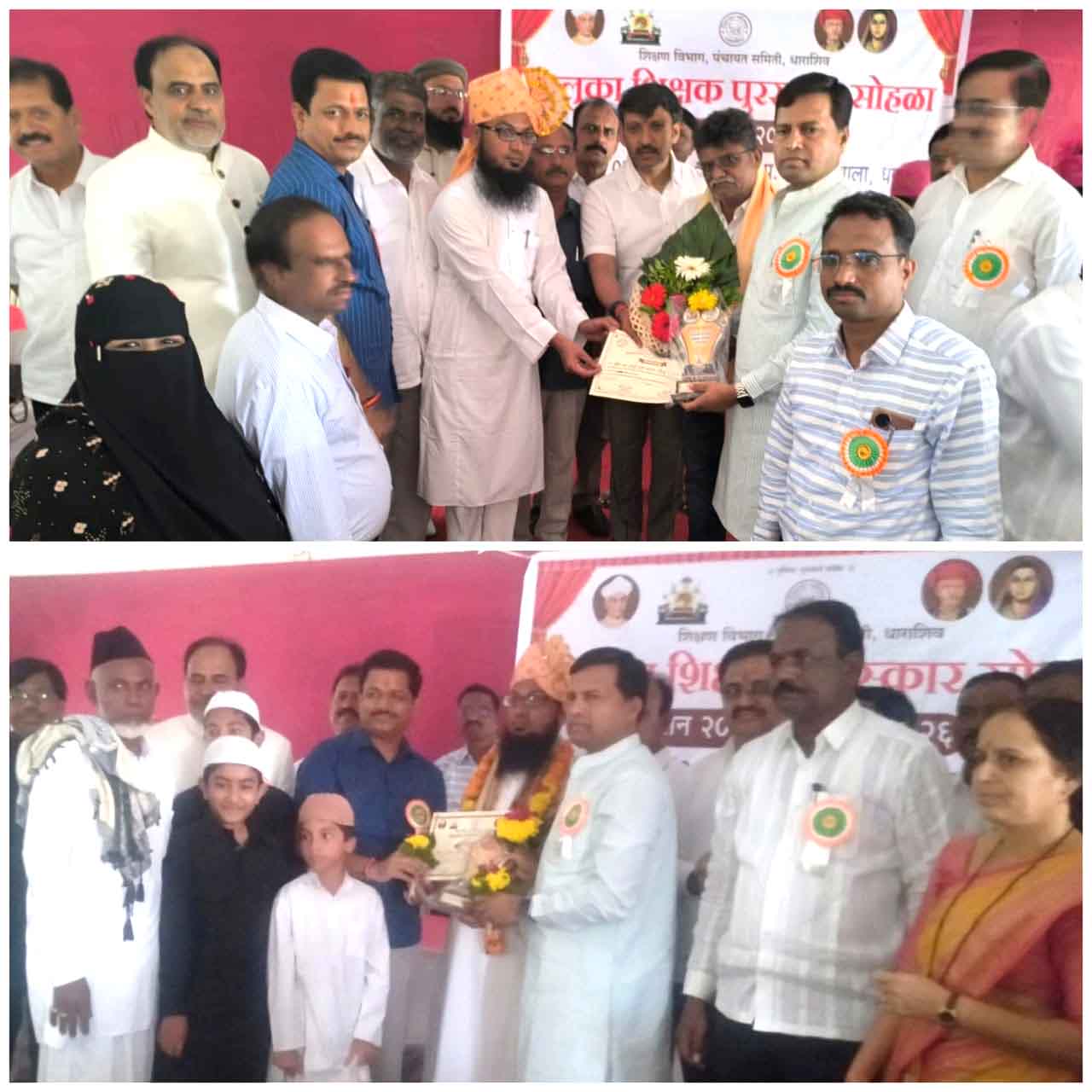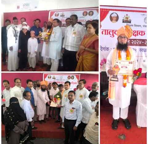 عثمان آباد:7؍ستمبر(راست) مورخہ 05 ستمبر 2025 کو یوم اساتذہ کے موقع پر عثمان آباد تعلقہ سطح پر بطور مثالی معلم شیخ مولا سر کو مثالی معلم ایوارڈ سے سرفراز کیا گیا ۔ پی ایم شری ضلع پریشد اردو اسکول تیر ضلع عثمان آباد کے فعال معلم شیخ مولا سر کو یہ اعزاز بدستِ عامدار برائے معلمین حلقہ مراٹھواڑہ جناب وِکرم کالے صاحب و کیلاس پاٹل صاب عامدار برائے حلقہ عثمان آباد پیش کیا گیا ۔ اس تقریب میں جناب اوم راجے نمبالکر صاحب خاص دار برائے حلقہ عثمان آباد کی موجودگی بھی قابل ذکر ہے۔ تقریب ھذا کی صدارت بلاک ڈیولپمنٹ آفسر جناب سنتوش نلاوڑے صاحب فرمارہے تھے ۔ اس تقریب کی میزبانی بلاک ایجوکیشن آفسر جناب الحاج سید اسرار احمد صاحب نے فرمائی۔ اس اعزازیہ پر جناب شیخ مولا سر کو حلقہ احباب کی جانب سے نیک خواہشات پیش کی جا رہی ہیں۔