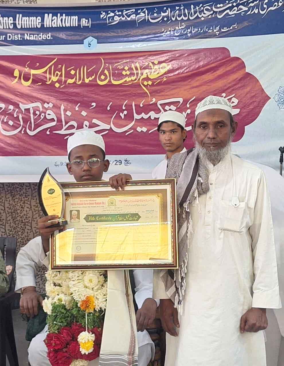 اردھا پور:2؍فروری (شیخ زبیر )قرآن مجید اللہ تعالیٰ کا کلام،اس کی آخری کتاب اور اس کا ایک معجزہ ہے، یہ دنیا میں سب سے زیادہ پڑھی جانے والی کتاب ہے،قرآن کریم کا یہ اعجاز ہے کہ اللہ تعالیٰ نے قرآن کی حفاظت کا ذمہ خود لیاہے چنانچہ قرآن کی حفاظت کے لیے سب سے پہلے حفظِ قرآ ن پر زور دیا گیا صحابہ کرام ہی کے زمانہ یہی طریقہ زیادہ محفوظ اور قابلِ اعتماد رہا ہے،ہمیشہ صحابۂ کرام رضی اللہ عنہم میں ایک اچھی خاصی جماعت ایسی رہتی جو نازل شدہ قرآن کی آیات کو یاد کرلیتی اور راتوں کو نماز میں دہراتی تھی،خود صحابۂ کرام رضی اللہ عنہم کو قرآن کریم یاد کرنے کا اتنا شوق تھا کہ ہر شخص ایک دوسرے سے آگے بڑھنے کی فکر میں رہتا تھا اسی سنتِ صحابہ کو زندہ رکھتے ہوئے مدرسہ حضرت عبداللہ ابن امِّ مکتومؓ اردھاپور ضلع ناندیڑ کےہونہار طالبِ علم محمد عزیر ابن محمد ذاکر صاحب اردھاپور نے صرف 12سال کی قلیل عمر میں قران کریم مکمل حفظ کر لیا قابلِ ذکر بات یہ ہے کہ اس ننھے حافظِ قران نے محض 7 ماہ مسلسل محنت، لگن اور استقامت کے ساتھ قران کریم کو اپنے سینے میں محفوظ کرنے کی سعادت حاصل کی اتنی کم عمر میں 7 ماہ کے قلیل عرصہ میں قران کریم مکمل حفظ کرنا نہ صرف اس بچے کی ذہانت اور محنت کا مظہر ہے بلکہ یہ مدرسہ کے تعلیمی ماحول، اساتذہ کی انتھک کوششوں اور منظم تربیت کا بھی واضح ثبوت ہے اہل علم کا کہنا ہے کہ اللہ تعالی جن بندوں سے دین کا کام لینا چاہتے ہیں انہیں کم عمری میں ہی قران سے جوڑ دیتے ہیں، موصوف کی اس بابرکت کامیابی پرمدرسہ ہذا میں علاقہ مرہٹواڑہ کی مشہور ومعروف شخصیت بزرگ عالمِ دین حضرت مولانا عبدالوہاب صاحب بیتی بانی ومہتمم مدرسہ ہذا کے زیرصدارت 29 جنوری بروز جمعرات صبح 10:00 بجے ایک روح پرور مجلس تکمیل حفظِ قران کریم ودعائیہ نشست کا انعقاد کیا گیاجس میں علماء کرام، اساتذہ, طلباء،اہلِ علاقہ کی( مرد وخواتین ) بڑی تعداد نے شرکت کی اس موقع پر موصوف طالب علم اور ان کے والد محترم کو ڈھیر ساری مبارک باد پیش کی گئ اجلاس میں موجود اکثر مہمانوں نے اساتذہ کرام اور مدرسہ کے انتظامیہ کو زبردست خراجِ تحسین پیش کی اور اس بات کا اظہارِ خیال کیا کہ مدرسہ کے انتظامیہ کی مخلصانہ کوششوں کی بدولت مدرسہ عبداللہ ابن امِّ مکتومؓ اردھاپور علم دین کے فروغ میں مسلسل ایک اہم کردار ادا کر رہا ہے اور علاقہ میں ایک مثالی دینی ادارہ بن چکا ہے نیز مولانا عبدالوہاب صاحب بیتی بانی ومہتمم مدرسہ ہذا کی ایماء وخواہش پر حضرت مولانا محمد سعد عبداللہ صاحب ندوی کی رقت آمیز دعا پر مجلس ختم ہوئی۔