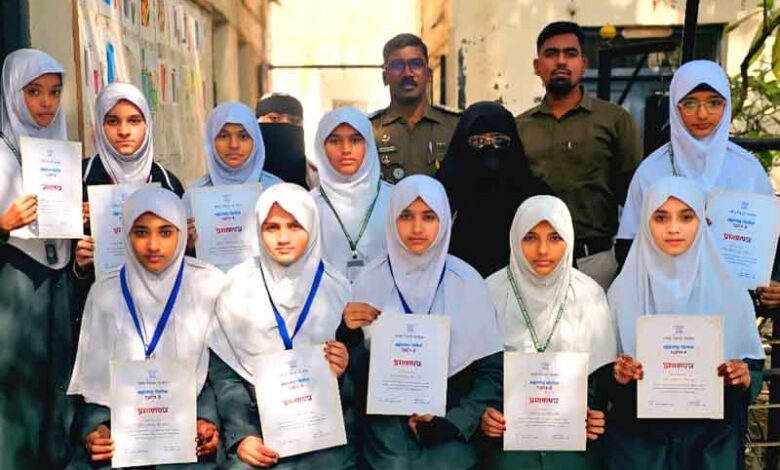 ناندیڑ:9؍جنوری (راست) مدینہ العلوم ہائی اسکول، ناندیڑ کے طلبہ نے محکمہ پولیس کی جانب سے منعقدہ پوسٹر کریشن مقابلہ (بموقع رائزنگ ڈے) میں سرگرم شرکت کرتے ہوئے اپنی تخلیقی صلاحیتوں کا بھرپور مظاہرہ کیا۔ اس مقابلے میں حصہ لینے والے طلبہ میں عنیزہ تحریم، سید ریحان، شفاء تسکین، بشرٰی فاطمہ، مائرہ ثمن، فاطمہ تبسم، محمد شاہد حسین، حنظلہ خان، علی اکبر خان، عبدالعادل، عبدالرحمن، افرا فردوس، ہادیہ فرحت، اسماء کوثر، مہوش کوثر، فائزہ فاطمہ اور عائشہ فاطمہ شامل ہیں۔طلبہ کی حوصلہ افزائی کے لیے پولیس محکمہ کی جانب سے اسکول کیمپس میں توصیف نامے تقسیم کیے گئے۔ یہ توصیف نامے پولیس حوالدار و ماسٹر ٹرینر سنتوش سنسوڑے نے طلبہ کے حوالے کرتے ہوئے ان کی تخلیقی کاوشوں کو سراہا اور مبارکباد پیش کی۔ اس موقع پر انہوں نے کہا کہ اس طرح کے مقابلے طلبہ میں سماجی شعور بیدار کرنے کے ساتھ ساتھ پولیس محکمہ کی عوامی خدمات سے متعلق آگاہی بڑھانے میں مددگار ثابت ہوتے ہیں۔اسکول انتظامیہ اور اساتذہ نے پولیس محکمہ کے اس اقدام کا خیر مقدم کرتے ہوئے اسے قابلِ تحسین قرار دیا۔