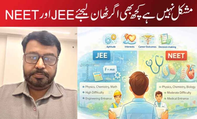 JEE اور NEET کا نصاب بظاہر محدود ہے کلاس 11 اور 12 کی NCERT کتابیں مگر اس کی گہرائی اور مقابلہ اسے مشکل بنا دیتا ہے۔ National Testing Agency کے تحت ہونے والے یہ امتحانات ہر سال لاکھوں طلبہ کی قسمت کا فیصلہ کرتے ہیں۔ JEE سال میں دو بار جبکہ NEET سال میں ایک بار منعقد ہوتا ہے، اور ان میں کامیابی کے لیے محض ذہانت نہیں بلکہ مستقل مزاجی، درست حکمت عملی اور رہنمائی درکار ہوتی ہے۔