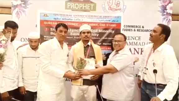 ملکاپور:11/ ستمبر ( محمد احسان سر ) گذشتہ روز مرین لائنز اسلام جمخانہ کلب، ممبئی میں قریشی کانفرنس کے جائزہ اجلاس میں قریشی سماج کے لئے مہاراشٹر پردیش تحریک میں ملکاپور کے عبدالصمد قریشی نے جو بے لوث و نمایاں خدمات انجام دی اس کے صلے میں قریشی سماج کے قومی صدر ایڈوکیٹ صنوبر علی قریشی (دہلی)، قومی تنظیم منتری اکرم قریشی، مہاراشٹر ورکنگ صدر ذاکر بھائی قریشی، ریاستی ترجمان ایڈوکیٹ وسیم بھائی قریشی ان کی موجودگی میں عبدالصمد قریشی ملکاپور ( صدر بلڈھانہ ضلع یوتھ کانفرنس ) کو اعزازی توصیفی سند، مومنٹو، سرٹیفیکیٹ آف آنر سے نوازا گیا اور شال گلدستے پیش کر آپکا والہانہ استقبال کیا گیا اور انھیں مبارکباد پیش کی. عبدالصمد قریشی نے کہا کہ میں یقین دلاتا ہوں کہ معاشرے کی خدمات و فلاح و بہبود کے لیے میں ہمیشہ کوشاں رہوں گا. اس اعزاز پر انھیں مبارکباد پیش کی جارہی ہے.