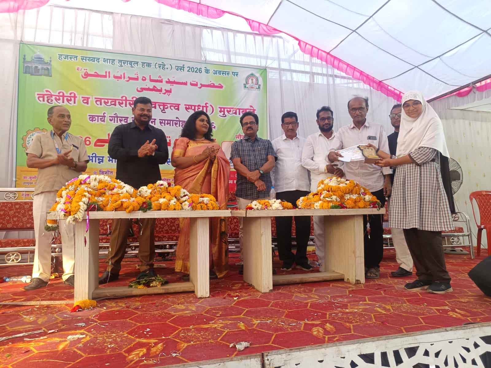 پربھنی :12؍فروری ( ضلع نامہ نگار اعتبار نیوز محمد سرور شریف)8 فروری 2026، بروز اتوار، صبح 9 بجےعرس حضرت شاہ تراب الحقؒ کے موقع منعقدہ مقابلے نہایت جوش و خروش اور پُروقار انداز میں انجام پائے۔ اس علمی و ادبی مقابلے میں مختلف اداروں کے طلبہ و طالبات نے حصہ لیا، تاہم موئیدالمسلمین پرائمری اسکول کی طالبات نے اپنی بہترین کارکردگی سے نمایاں مقام حاصل کیا۔تحریری مقابلے میں اسکول کی طالبہ اشباء فاطمہ بنت وحید نے اپنی عمدہ تحریر کی بدولت اول انعام حاصل کر کے اسکول اور والدین کا نام روشن کیا۔ اسی طرح تقریری مقابلے میں اسکول کی ہی طالبہ عائشہ انصاری بنت شکیل انصاری نے مؤثر اندازِ بیان اور بہترین تیاری کے ساتھ حصہ لیتے ہوئے حوصلہ افزائی (Consolation) انعام حاصل کیا۔اس موقع پر صدر مدرس عبدالباسط نے کامیاب طالبات کا پرتپاک استقبال کیا اور ان کی حوصلہ افزائی کرتے ہوئے کہا کہ ایسے مقابلے طلبہ و طالبات کی صلاحیتوں کو نکھارنے میں اہم کردار ادا کرتے ہیں۔