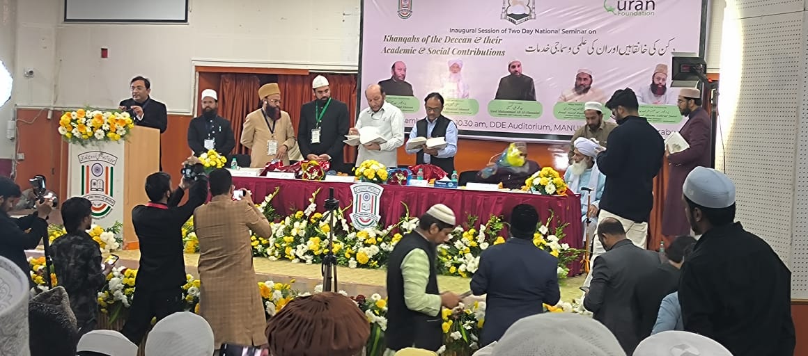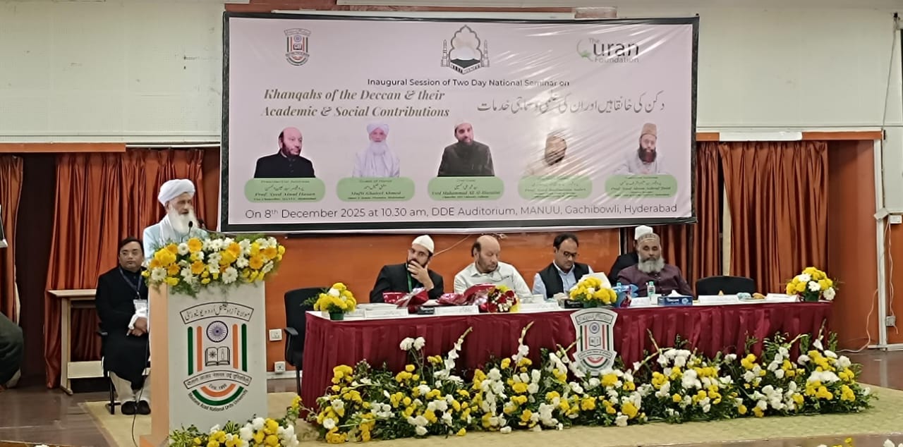 حیدرآباد :10؍دسمبر(راست)مورخہ 8/9ڈسمبر 2025مولاناابوالکلام آذاد نیشنل یونیورسٹی میں منعقد دو روزہ قومی سیمینار بعنوان دکن کی خانقاہیں اور ان کی علمی و سماجی خدمات کا انعقادعمل میں آیا۔ اس سیمینار کی افتتاحی نشت کی صدارت محترم پروفسیر سید عین الحسن(شیخ الجامعہ مانو حیدراباد)کی نبھائی ۔مہمانان خصوصی محترم سید محمد علی الحسینی (چانسلر ِخواجہ بندہ نواز یونیورسٹی گلبرگہ)،محترم مولانا مفتی خلیل احمد (امیر جامعہ جامعہ نظامیہ حیدرآباد)،پروفیسر سید بدیع الدین صابری (سابقہ صدر شعبہ عربی عثمانیہ یونیورسٹی حیدر آباد)،جناب اشتیاق احمد(رجسٹرارمانو حیدرآباد )،پروفیسر علیم اشرف جائسی (مانو حیدرآباد )،پروفیسر محمد عبدالسمیع صدیقی (ڈائریکٹرCPDUMTمانو حیدرآباد) کی موجودگی میں سیکڑوں خانقاء کے خادم مین،خلیفہ،مریدین مختلف یونیورسٹی کے شعبہ صدر،مقالہ نگار،اسکالرس اس دویوم کے قومی سیمینار کا افتتاح عمل میں آیا۔اس افتتاحی جلسہ میں خطبہ استقبالیہ محترم پروفیسر سید علیم اشرف جائسی نے پیش کیا ۔کلیدی خطبہ پروفیسر سید بدیع الدین صابری نے پیش کیا ، مہمانان خصوصی و مہمان اعزازی نے اظہار خیال کیا وصدر جلسہ پروفیسر سید عین الحسن صاحب خطاب کیا ۔اس نشست کی نظامت و شکریہ کی رسم پروفیسر محمد عبدالسمیع صدیقی نے پیش کیں ۔اس سیمینار میں سارے ہندوستان بھر سے کثیر تعداد میں مقالہ نگار ،اسکالرس ،صحافی حضرات نے موجود تھے ۔اس سیمینار میں ناندیڑ سے مختلف مقالہ نگاروں نے شرکت کی جس میں محترم مفتی محمد شمس الدین صدیقی ،ڈاکٹر محمد عبدالرافع ،جناب عبدالملک نظامی نے اپنے مقالہ جات پیش کیے ۔اس سیمینار میں عبدالنصیر(صدر مدرس مدرسہ نونہال ) نے شرکت فرمائی۔اس قومی سیمینارمیں تقریباً 103مقالہ نگاروں کے مقالوں کو 1300صفحات پر مشتمل ایک کتاب طباعت کی گئی،بعنوان (دکن کی خانقاہیں اوران کی علمی و سماجی خدمات ) کا نسخہ ہر ٹکنیکی سیشن کے اختتام پر مقالہ نگار کو سرٹیفکیٹ و کتاب دی گی ۔